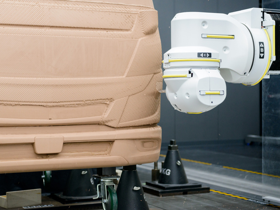 El resultado de su modelado físico se traduce en datos a través de un dispositivo de escaneado para preparar el ajuste digital. Las últimas tecnologías de impresión en 3D y fresado con máquinas de control numérico entran en juego cuando se requieren mayores niveles de precisión para las secciones de diseño más intrincado, como la parrilla o el logotipo de tres diamantes de FUSO.
