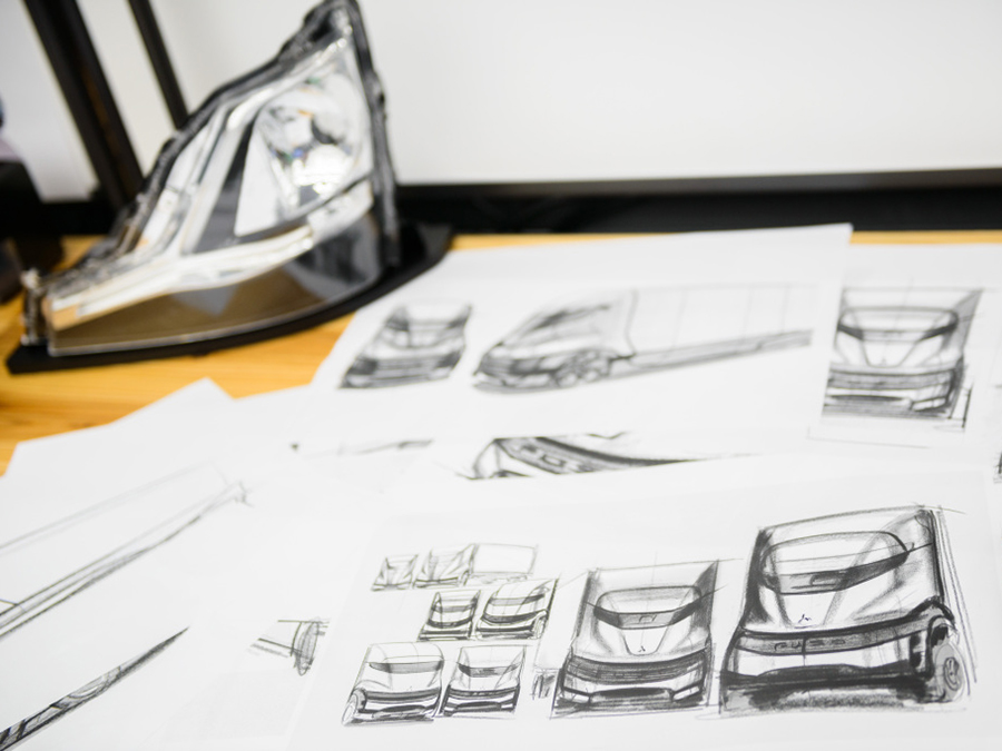 Esta mezcla permite que el diseño en Mitsubishi Fuso aúne la experiencia global y la tecnología líder con la tradicional singularidad de los camiones y autobuses FUSO dentro de la gama de Daimler Trucks. El resultado es una gama de vehículos que refleja la herencia de FUSO como incondicional del «monozukuri» japonés, a la vez que interpreta las formas orientadas al futuro y la precisión fundacional de los vehículos Daimler.